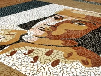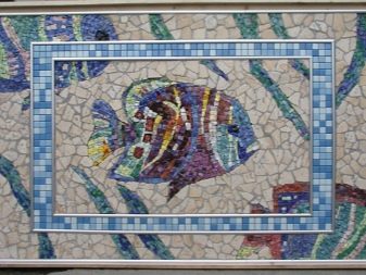 Pour les amateurs de motifs naturels, le marbre, le smalt et la pierre naturelle ont été utilisés pour augmenter le prix. Pour ceux qui ont moins de moyens, il existe des analogues qui diffèrent peu des versions originales. Sur les types et les propriétés de la mosaïque, vous pouvez dire ce qui suit: