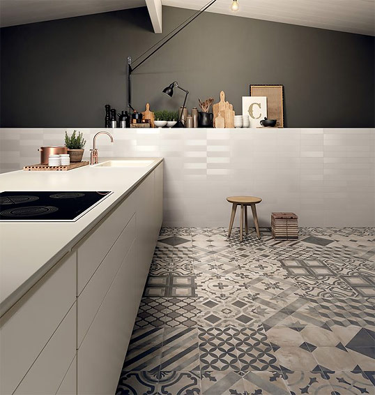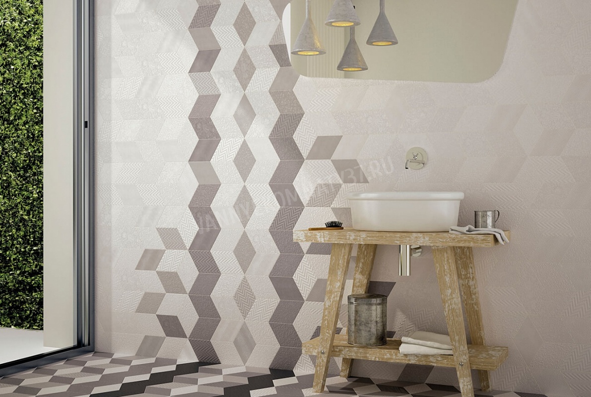 La réception d’une combinaison de différents carreaux, souvent opposés, est intéressante. Il s’agit d’une combinaison de plaques lisses et peintes, lisses et en relief, mates et brillantes, de plaques de différentes tailles et configurations qui s’emboîtent parfaitement.