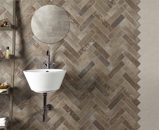 - Structuré le grès cérame a une surface inégale. Ils y ont apposé un dessin et un relief imitant la pierre naturelle, le cuir, le bois, les tissus avec un motif, tous les matériaux. Ce type de grès cérame est même recouvert de feuilles d'or.