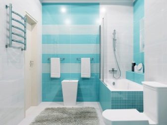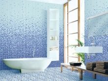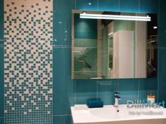 Pour la salle de bain, vous pouvez utiliser non seulement le thème maritime classique, mais également l’effet du dégradé actuel, lorsqu’une couleur se transforme en douceur en une autre.Recherchez également des options avec une finition perle. Vous seriez surpris, mais la mosaïque peut être étendue même à l'intérieur de l'évier. Pour cela, les maîtres décorateurs recommandent de choisir le matériau sur une base de grille.