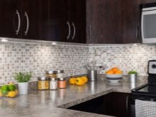 Si vous envisagez de créer un ornement en mosaïque, vous pouvez utiliser une variation de texture, et cela n'a pas d'importance: les motifs géométriques que vous souhaitez capturer ou les motifs floraux. Et les prises de courant et les panneaux de mosaïque sur les murs peuvent être efficacement encadrés avec de petits carreaux de céramique.