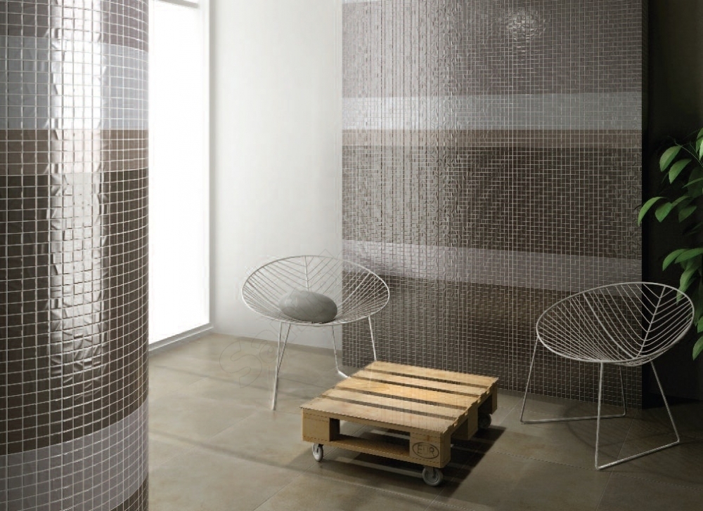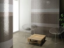 La société propose dans son assortiment à la fois une mini-dalle émaillée monolithique de 23x23 mm et des bandes entières de 300x300 mm dans lesquelles les éléments en mosaïque sont reliés les uns aux autres avec une colle spéciale. Une aussi grande couverture s’empile plus vite et plus facilement qu’en miniature.