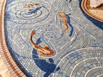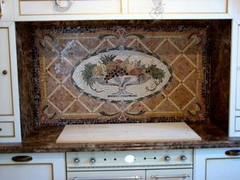 Le plus souvent pour la composition utilisant des pierres naturelles. Cependant, cette option a un coût assez élevé. Par conséquent, vous pouvez choisir des céramiques pour les mosaïques ou des variétés de carreaux plus abordables et modernes.