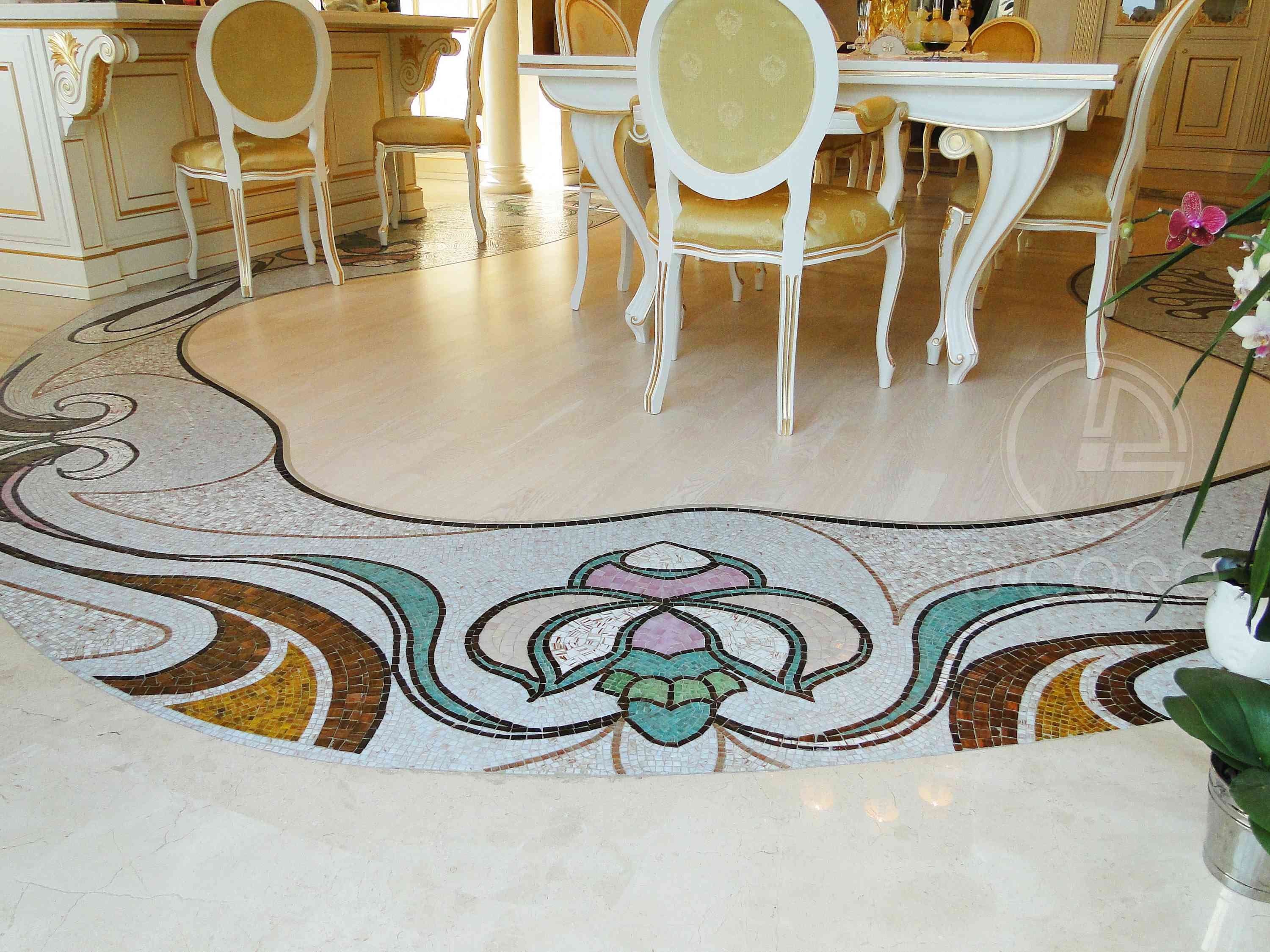 Soit dit en passant, si votre appartement n'est pas construit dans un style antique et que vous souhaitez toujours placer une mosaïque romaine, vous ne devez pas vous refuser un tel plaisir.La particularité de la mosaïque romaine est qu'elle se combine parfaitement avec différents types de styles, même si elle est très brillante.