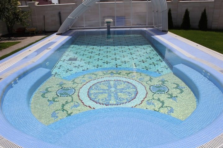Utilisez les carreaux pour décorer le bol de votre piscine. Ou un placage avec une salle de cheminée en mosaïque. Vous verrez, cette réception ne sera pas ignorée. Et si vous décidez de décorer complètement la salle de bain dans le style de l'époque romaine, le résultat sera tout simplement incroyable. Complétez l'espace avec des accessoires qui correspondent au style et vous obtiendrez un intérieur magnifique.
