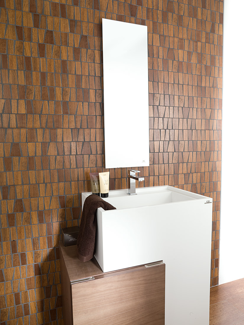Une série de carreaux est également intéressante. Firenzedont la taille est de 20x31,6 cm.Il n’a pas de bord lisse et, comme posé, il est comme encastré dans un. La tuile de sol acquiert un effet de mosaïque et, en combinaison avec une série de tuiles grand format, vous permet de créer des solutions d'intérieur innovantes et modernes.