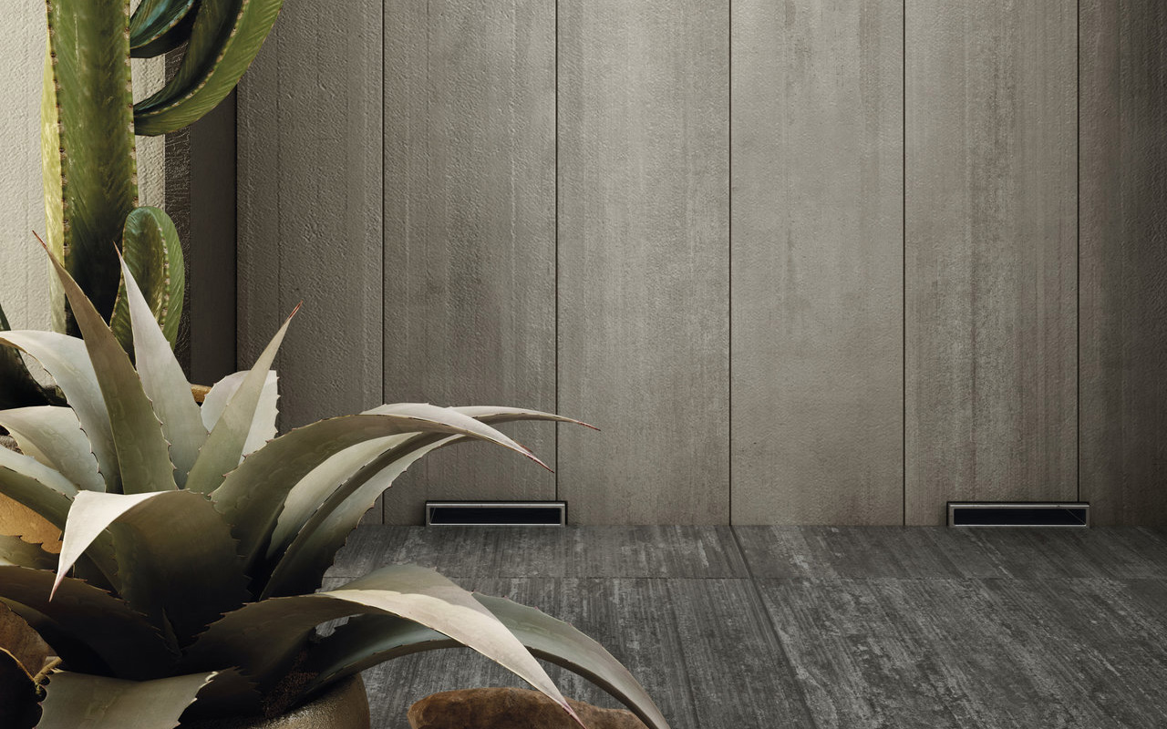 Arizona Concrete - la surface des carreaux de cette collection est semblable à celle des planches de menuiserie et à une pierre mystique, des ombres expressives sur du ciment lisse ou rugueux peuvent être vues