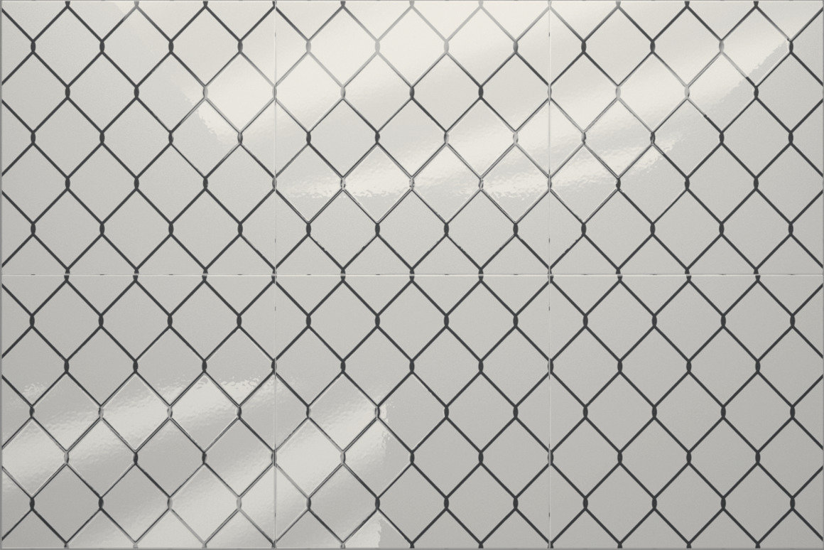 Clôture - une tuile avec l’image d’une grille métallique. Gamme de couleurs: blanc sur blanc, gris sur gris, noir sur noir, noir sur blanc. Disponible en taille 20 * 20.