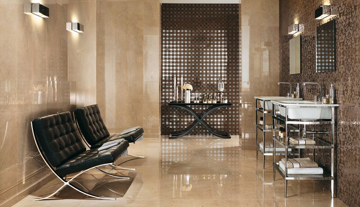 Aujourd'hui tuiles et tuiles de porcelaine fabriquées par l'entreprise Porcelanosa a reçu une reconnaissance méritée sur tous les continents. Ils imitent parfaitement le marbre, la pierre naturelle et d'autres types de matériaux. Avec l'aide de la tuile sans couture Porcelanosa, il est devenu possible de créer des intérieurs intemporels.