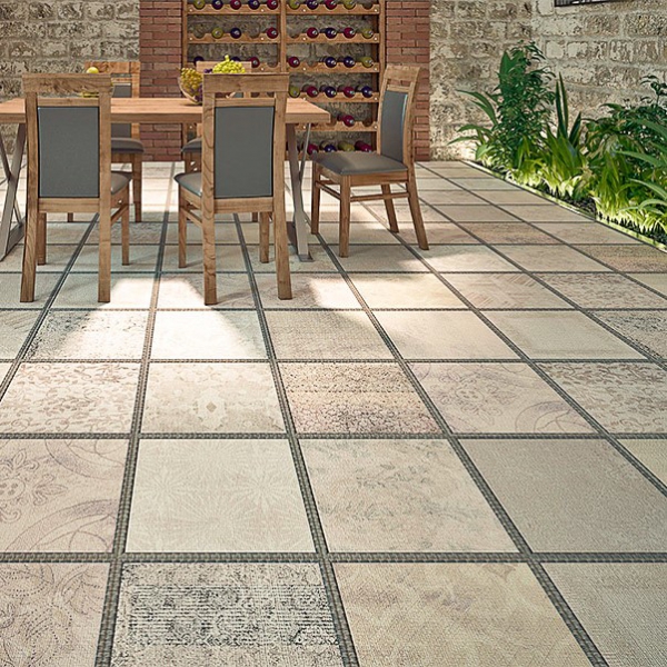 - Une variété de textures très réalistes copient la surface de tissu, bois, métal, ce qui permet au carreau de remplacer d'autres matériaux de finition.