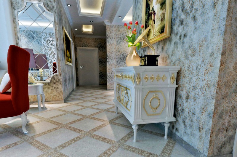 Le sol "Keramin" est représenté par des carreaux de céramique, du granit de céramique émaillé glacé et de grande taille. Les concepteurs de la société proposent une large gamme de séries thématiques.