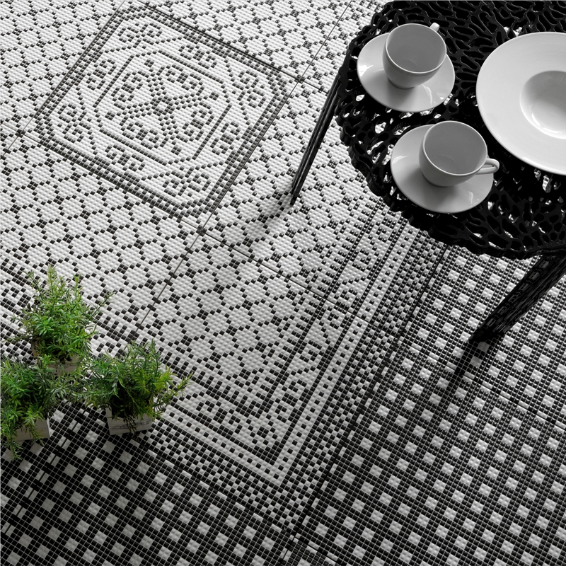 La collection comprend généralement des carreaux de sol, des bordures jusqu’à 2 cm de large, des décors de 6,2 x 6,2 cm, des carreaux de bordure de 9 cm de large et des carreaux muraux de 30x20 et 40x27,5 cm. Tous ces éléments créent un intérieur magnifique sera en harmonie avec les carreaux de sol.