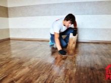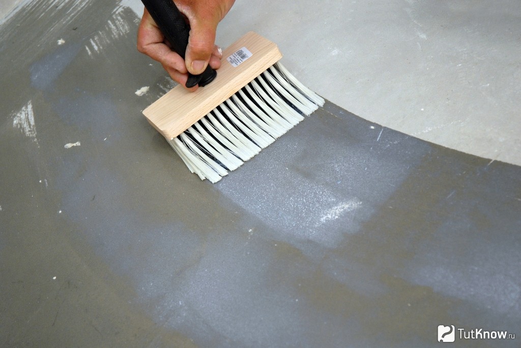 - Au cours du séchage, le film plastique fort se forme. Après une journée, la colle sèche complètement, ce qui rend la surface prête pour diverses charges et travaux ultérieurs.
