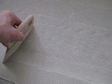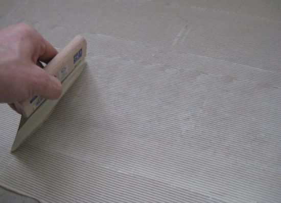 Après une pose complète du revêtement en carreaux, il est nécessaire de marcher dessus avec un gros rouleau en caoutchouc ou de l'essuyer avec un liège.