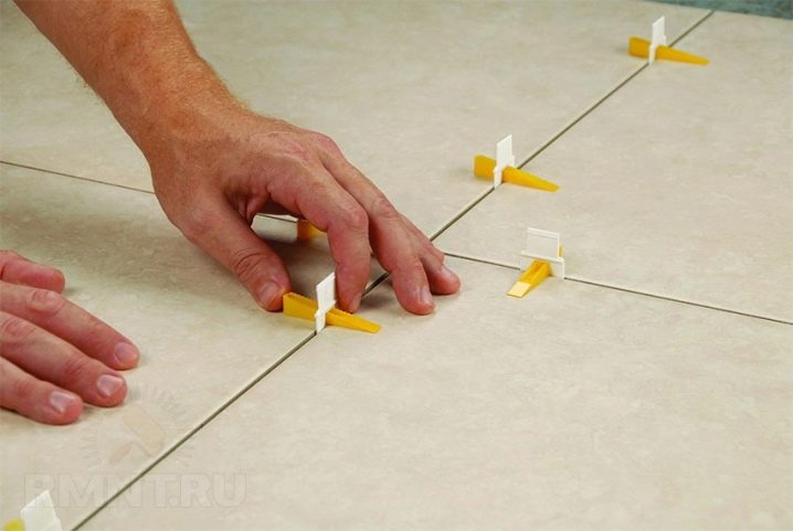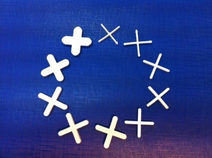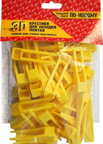 Pour une installation fiable et la facilité de retrait des pièces, après le travail il est préférable de choisir des croisements importés avec des cavaliers entre les genoux. Ils sont plus forts, plus rigides, il est plus pratique de travailler avec eux. Lors de la finition du sol et des murs, il est préférable de s’approvisionner immédiatement en un ensemble de croix et de cales nécessaires.