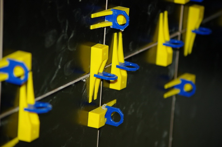 Un ensemble de SVP comprend des cales en plastique et des clips avec des boutons-pression, généralement de couleurs différentes. Ce sont des éléments auto-nivelants qui vous permettent de former simultanément une couture plate et de poser des carreaux adjacents dans le même plan. Dans un jeu, il y a 250 pinces et cales.