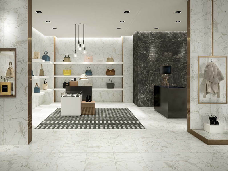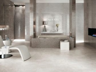 Le revêtement antidérapant est obtenu par pulvérisation supplémentaire de matériaux spéciaux. Une telle solution permet de préserver durablement les qualités stables des sols, même dans les endroits où de nombreuses personnes marchent constamment. Cette tuile est choisie pour les gares, les institutions officielles, les grands centres commerciaux. À la maison, la protection contre l'humidité et la résistance élevée à l'abrasion sont les priorités.