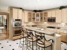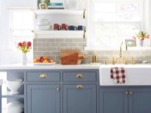 L'intérieur ressemble à des carreaux bleus et bleus brillants, combinés dans différentes zones de la pièce. Ainsi, dans la cuisine, la zone du tablier peut être garnie de carreaux bleus et la salle à manger - bleue. Un tel intérieur avec un ornement approprié convient à une cuisine de style oriental.