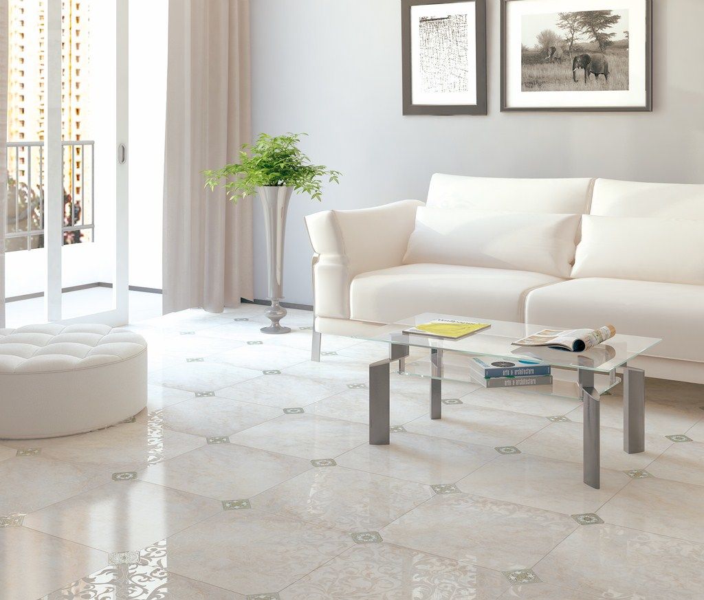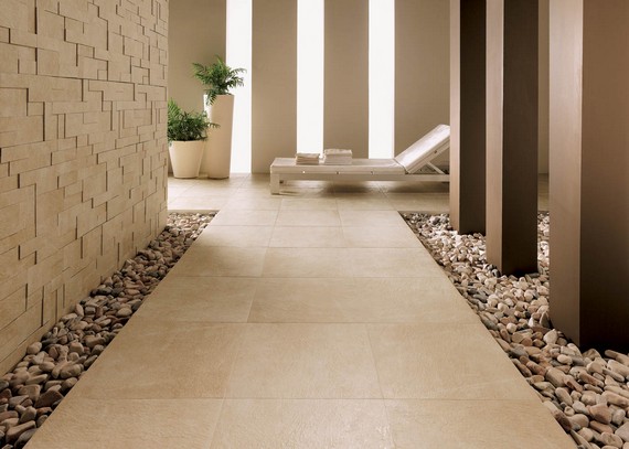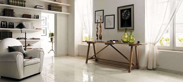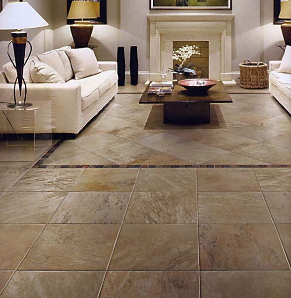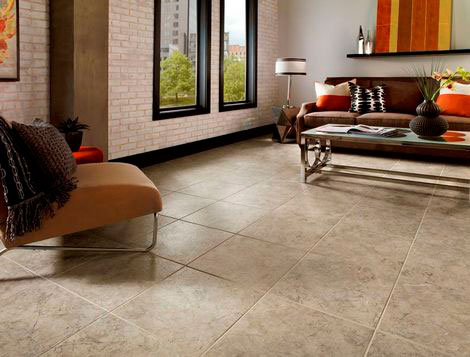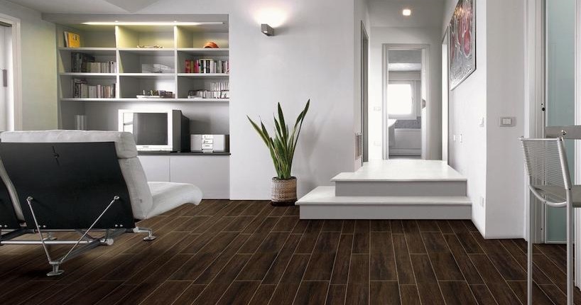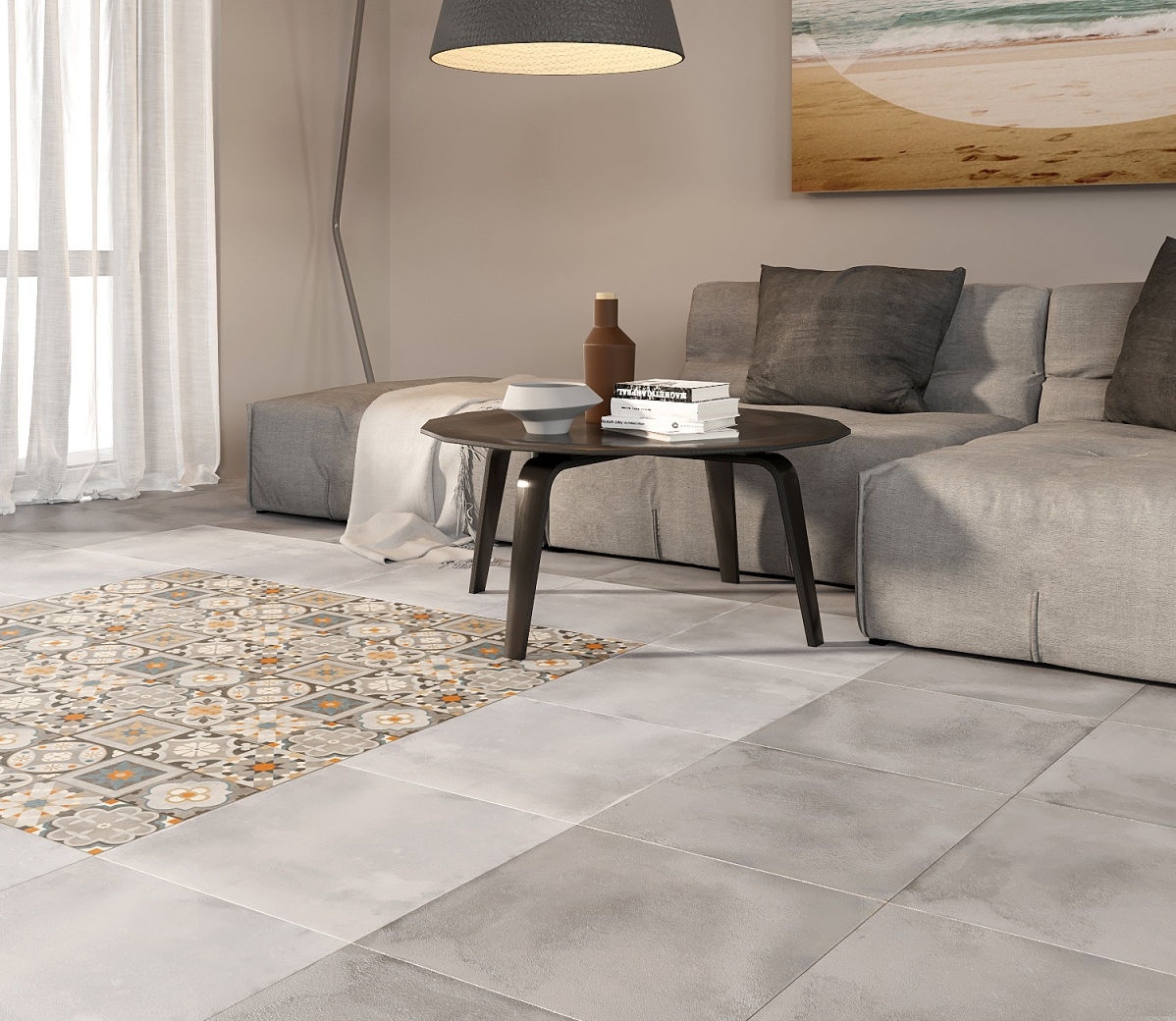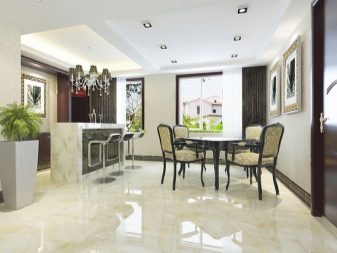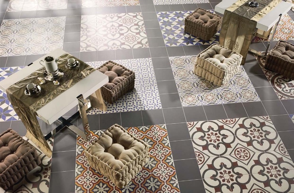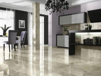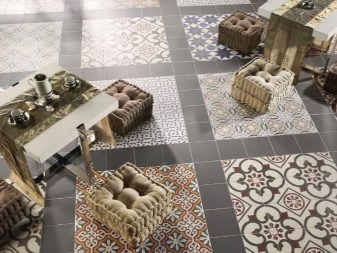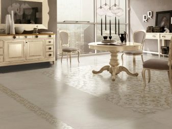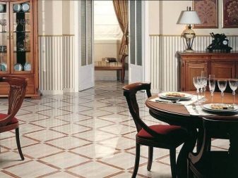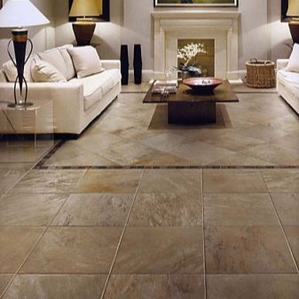 L'option la plus polyvalente - les tuiles plates. Ainsi, avec différentes couleurs d'un tel revêtement de sol, vous pouvez créer un zonage dans des pièces spacieuses ou rendre leur conception plus intéressante et plus diversifiée.