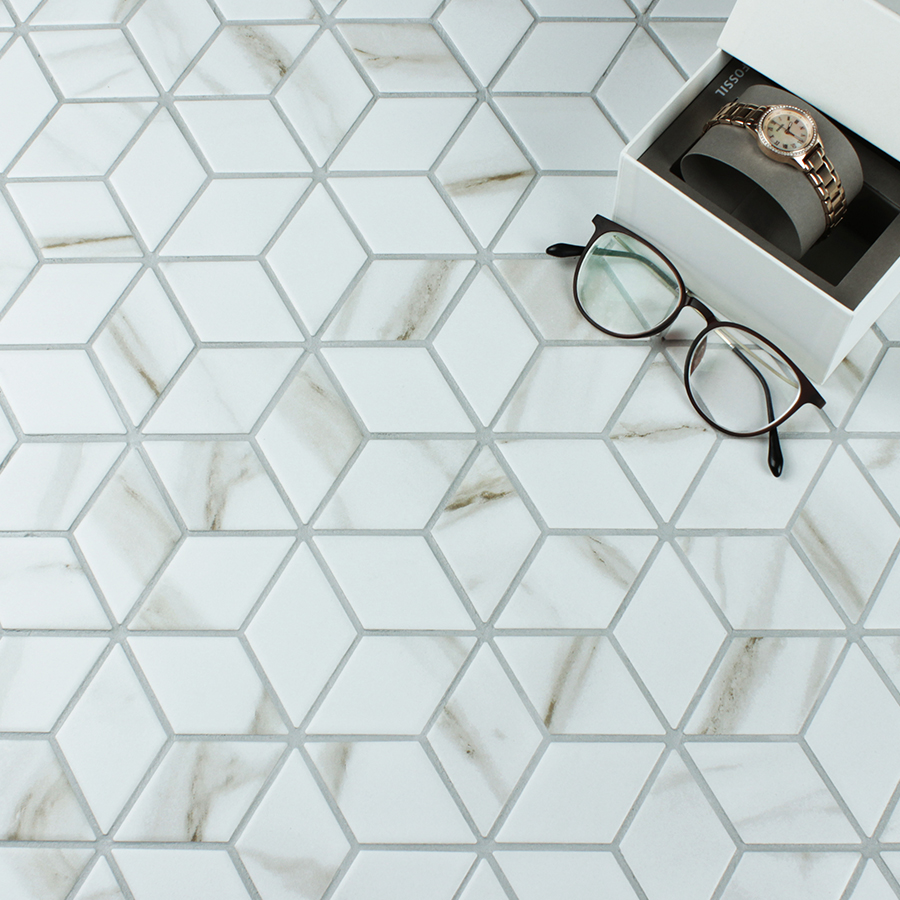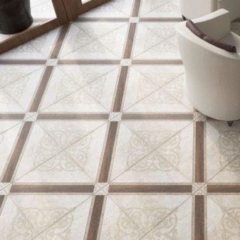 Certains modèles peuvent être placés en diagonale. La tuile aura donc une forme de diamant. Ainsi, le sol de la pièce sera inhabituel. Dans ce cas, la consommation de matière augmente, car il est nécessaire de découper ces modèles le long des bords.