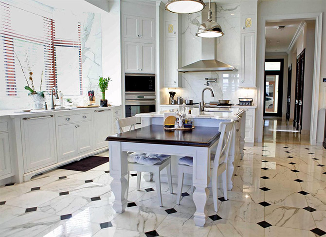 - résistance à l'humidité. Cette propriété doit être considérée dans le cas où le matériau est destiné à une salle de bain ou une cuisine. Dans ces pièces, il est particulièrement important que le revêtement n'absorbe ni ne laisse pénétrer dans l'eau. De plus, il prolonge la durée de vie du carreau, car il ne sera pas détruit par l'humidité.