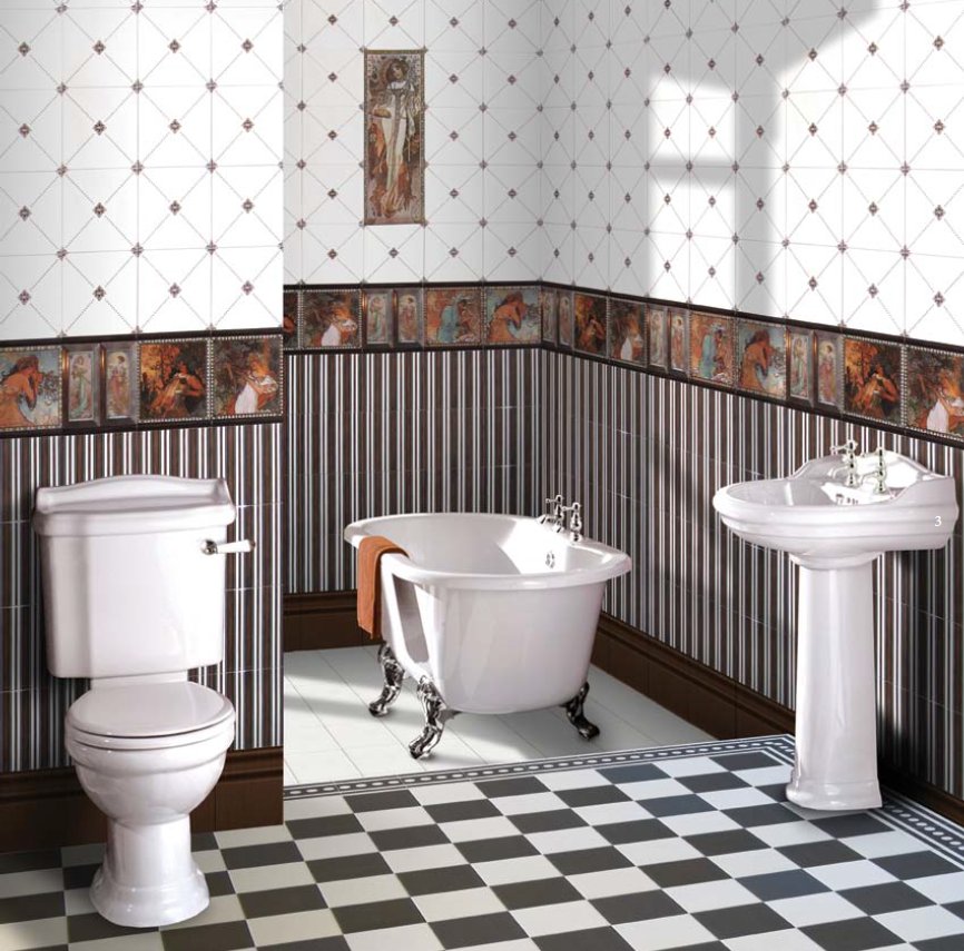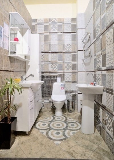 L'intérieur de la salle de bain aura l'air superbes carreaux bleus, violets et beiges Mais pour la décoration des salles plus approprié rouge, jaune ou vert, en fonction de la conception de la salle et de la palette de couleurs qui prévaut dans son intérieur.
