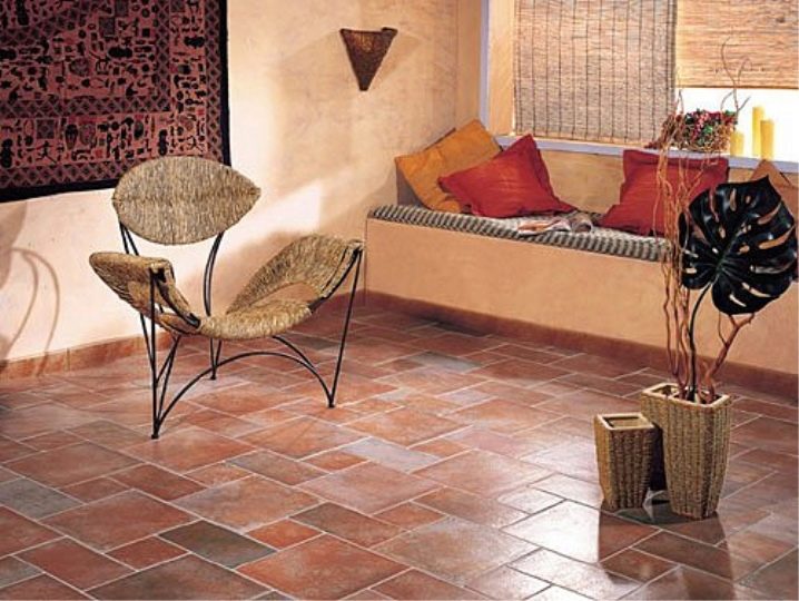 Les options les plus simples sans émail ni glaçure sont des modèles en argile rouge. On les appelle cotto. Ils sont placés dans des zones peu fréquentées, car ce sont des modèles fragiles et éphémères. Mais ils ont l'air naturel et naturel.