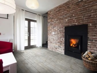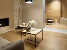 Les carreaux de sol conviennent à l'intérieur du salon avec une cheminée: cela donne à l'espace une note de chaleur et de confort.