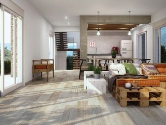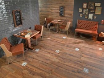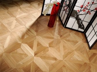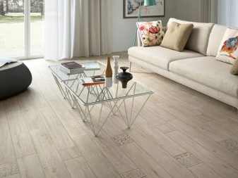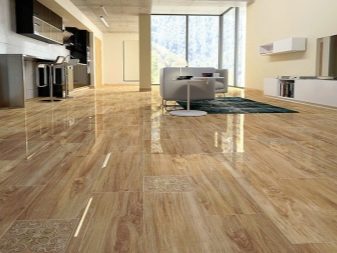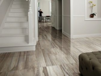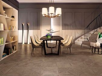 La surface du sol avec un tel matériau peut sembler monolithique ou répéter les options de pose de parquet. En même temps, plusieurs types de plaques de différentes nuances et tailles peuvent être utilisées dans le travail, créant des dessins complexes et des panneaux décoratifs.