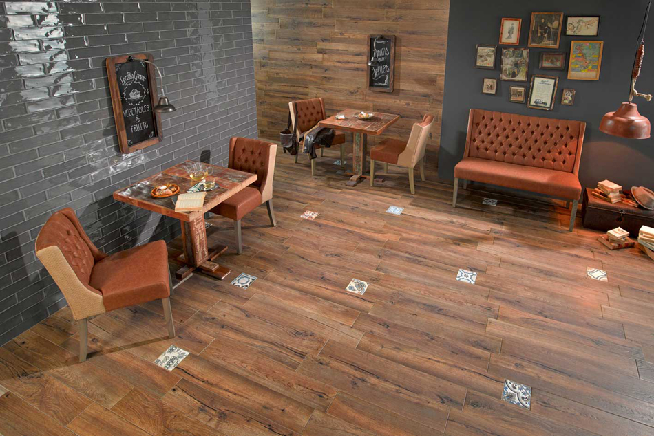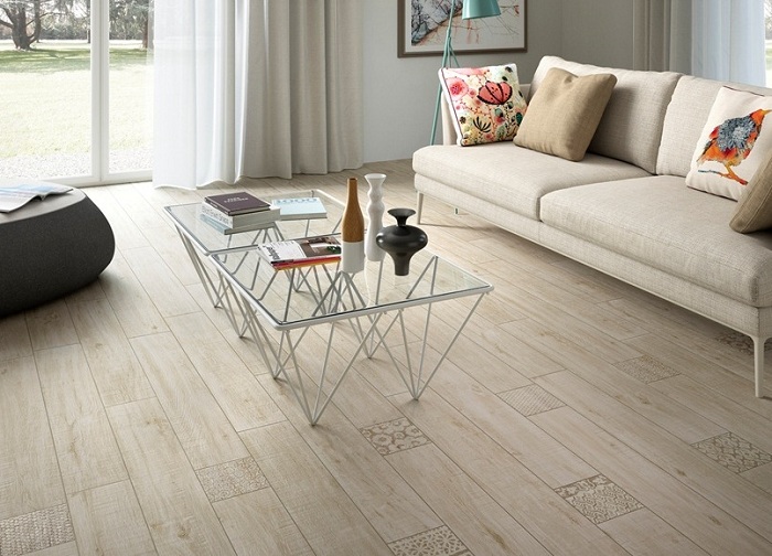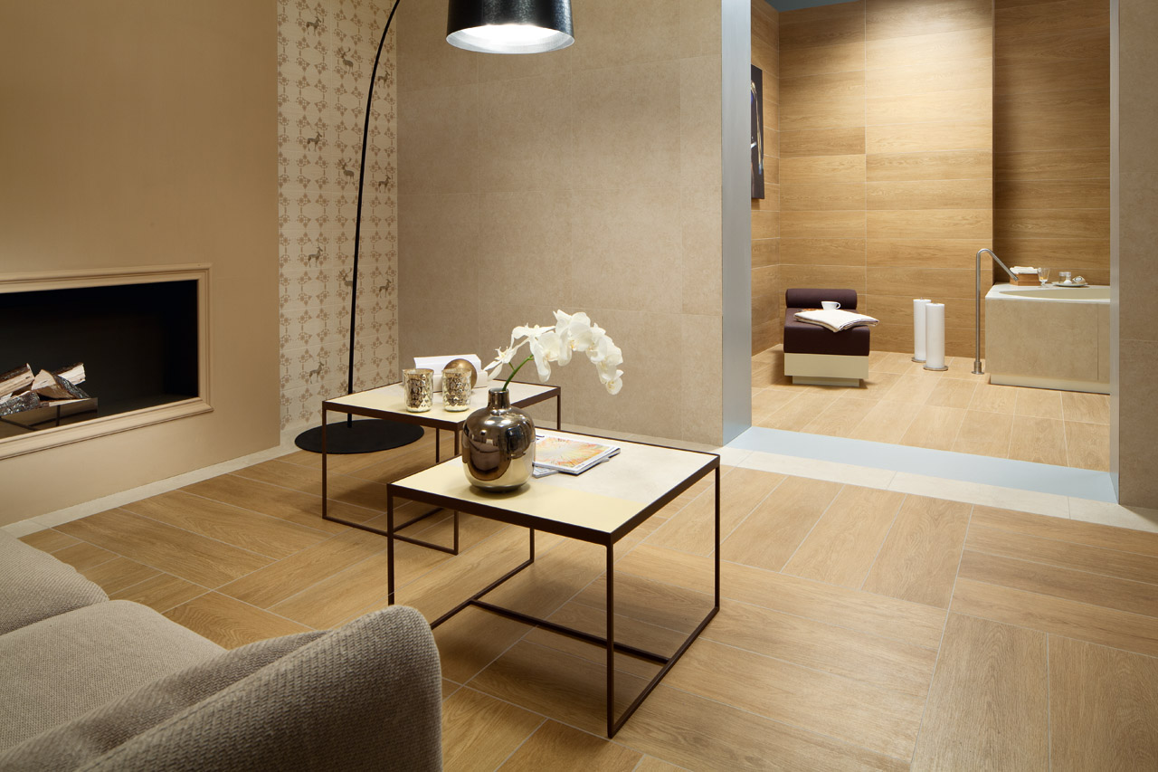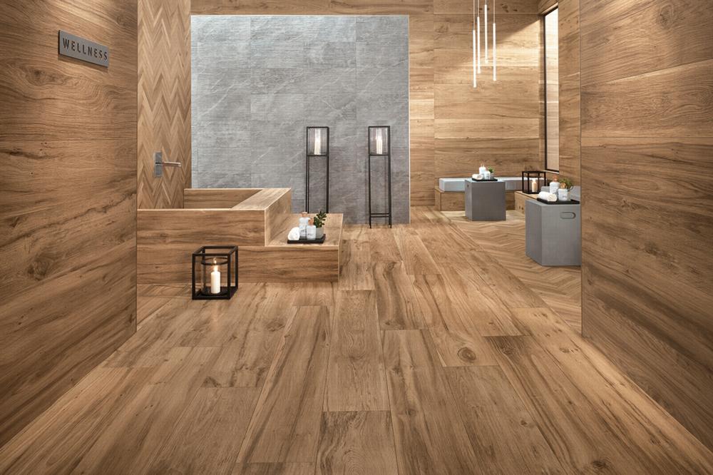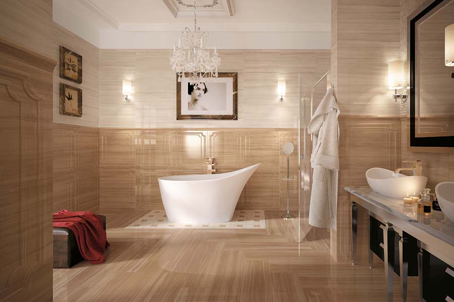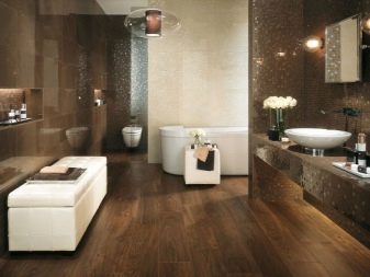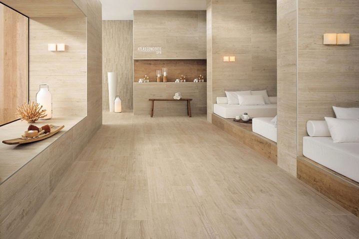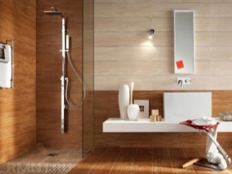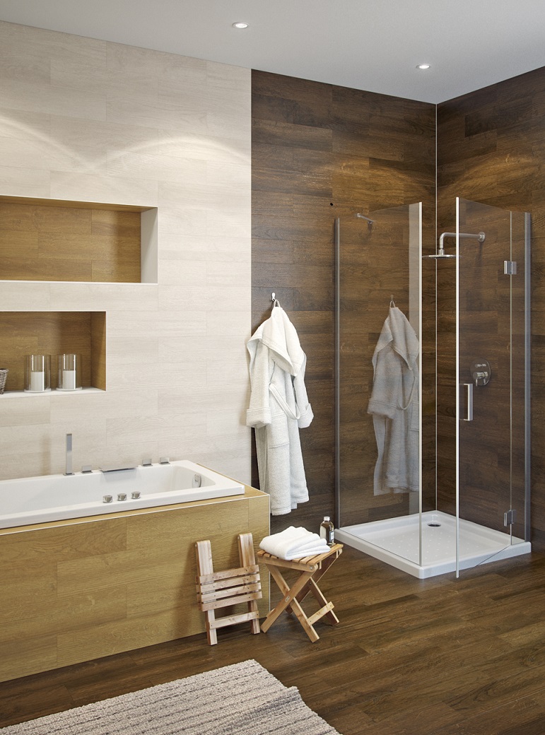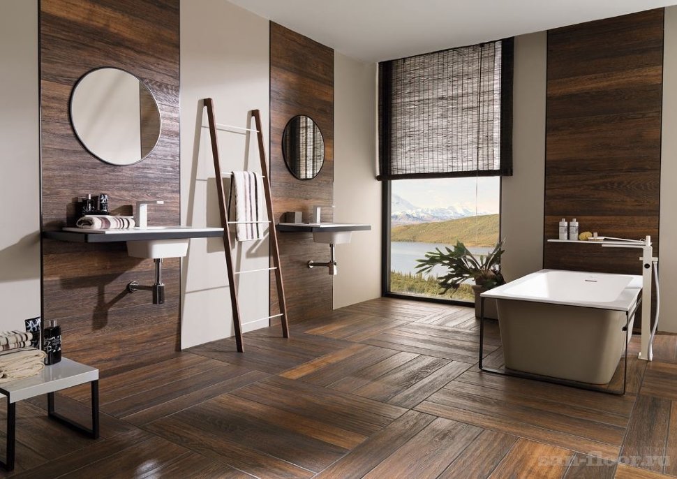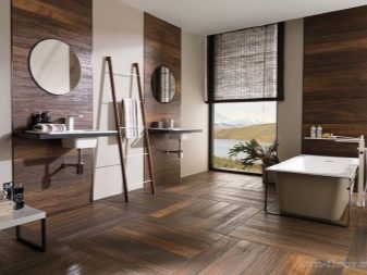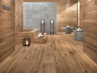 - Les carreaux avec la texture du bois peuvent être utilisés comme revêtement de sol dans n'importe quelle pièce, et en particulier dans les pièces très humides: la glisse sur la surface de l'eau est exclue.