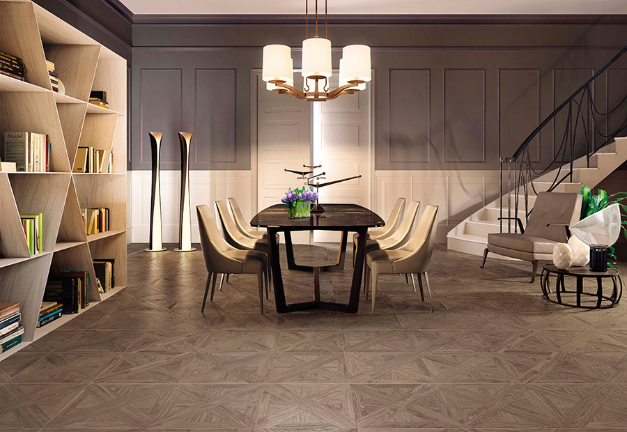 La demande de carreaux de sol sous l'arbre en raison de la masse d'avantages. Le principal d'entre eux est la texture qui imite tous les types de bois, y compris les bois précieux, de différents types de bois: radial ou tangentiel.