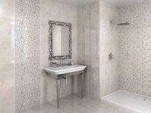 Pour la salle de bain, le choix le plus pratique des couleurs de carreaux est le choix des couleurs claires. Teintes pastel particulièrement bien adaptées. L’optimalité de cette option réside dans la facilité de nettoyage des carreaux: sur un carreau clair, la poussière, les taches blanches provenant des détergents et de l'eau séchée seront invisibles.