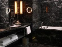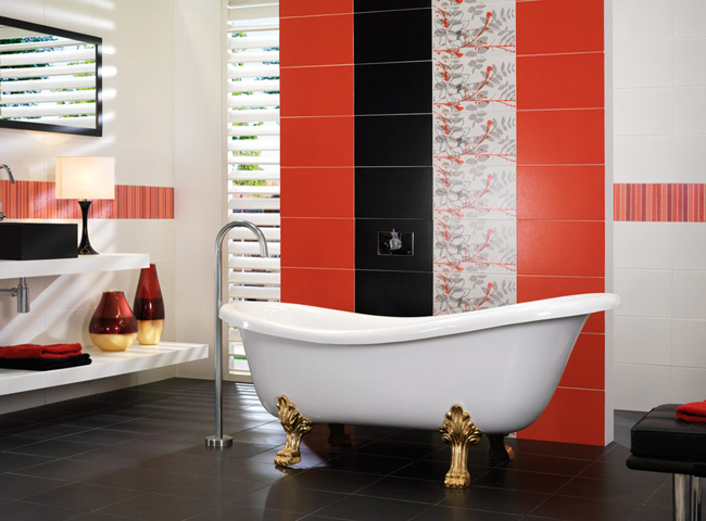 Vous pouvez fabriquer des revêtements de sols et de murs à partir d’une collection de carreaux. Dans ce cas, le mobilier doit être un accent brillant dans la pièce.