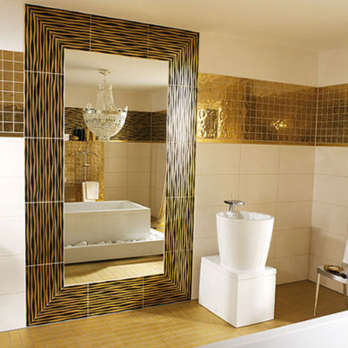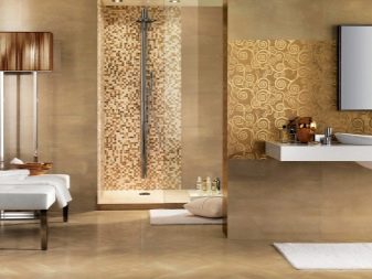 Un mouvement de conception intéressant sera une combinaison de tuiles mates et brillantes. Il est préférable de placer une tuile mate dans les zones où l'eau est le plus souvent utilisée. Un brillant - dans les endroits éloignés de l'utilisation fréquente.