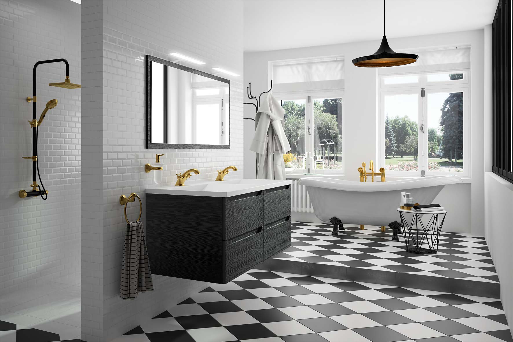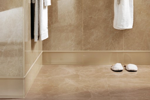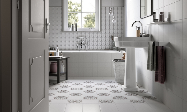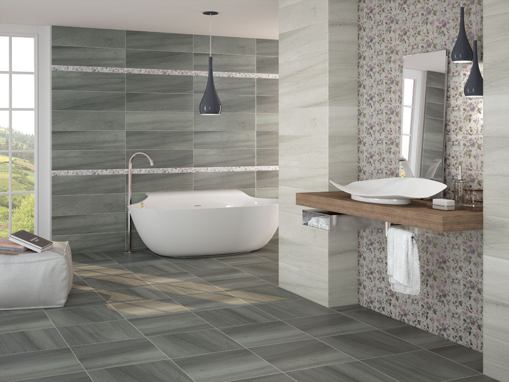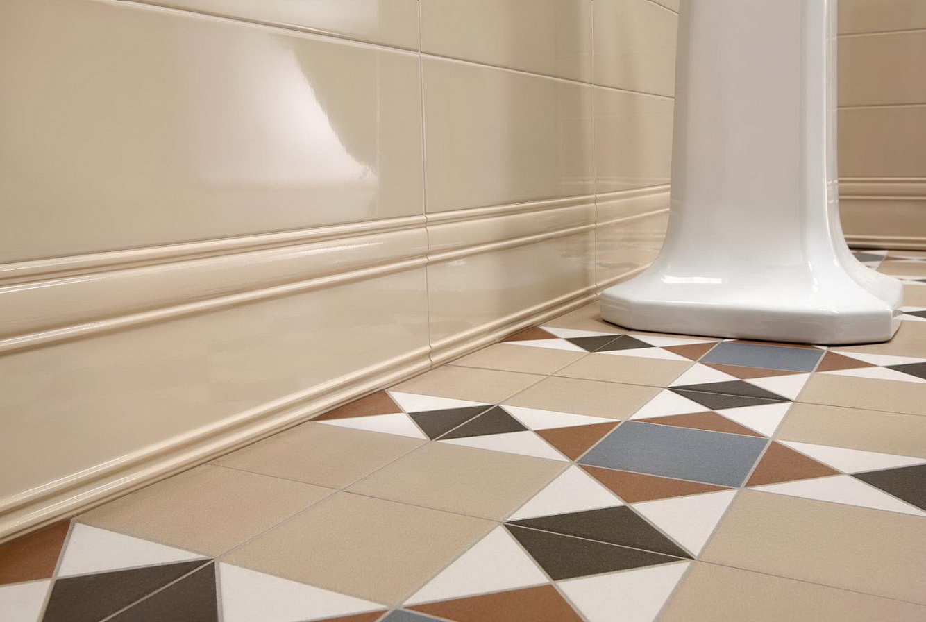 Pour carreler les murs et le sol en harmonie, les deux carreaux peuvent être choisis dans une même collection. Les fabricants incluent à l’avance une combinaison de nuances, de textures et de motifs.