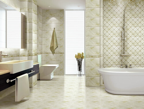 - Faible hygroscopicité. Dans la salle de bain, il est impossible d'empêcher l'eau de pénétrer dans le sol. De plus, le sol est exposé quotidiennement au contact de l'eau. La structure de la tuile doit être finement poreuse, une structure similaire est acquise lors de la cuisson. Vitrer la surface aidera également à assurer une faible hygroscopicité. Le coefficient d'hygroscopicité ne doit pas dépasser 4,5%.