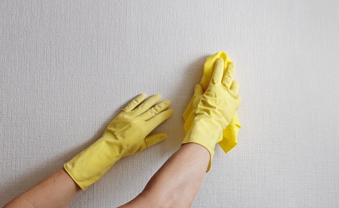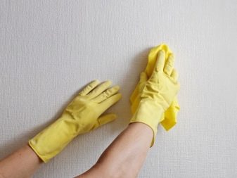 Laver la couverture dans le sens du bas.Lorsque vous utilisez une solution de savon ou un autre détergent après le nettoyage de la saleté, le papier peint doit être essuyé avec un chiffon imbibé d’eau propre. Après la fin du nettoyage, sa surface doit être séchée à l'aide d'un chiffon en coton.