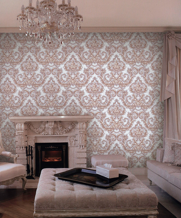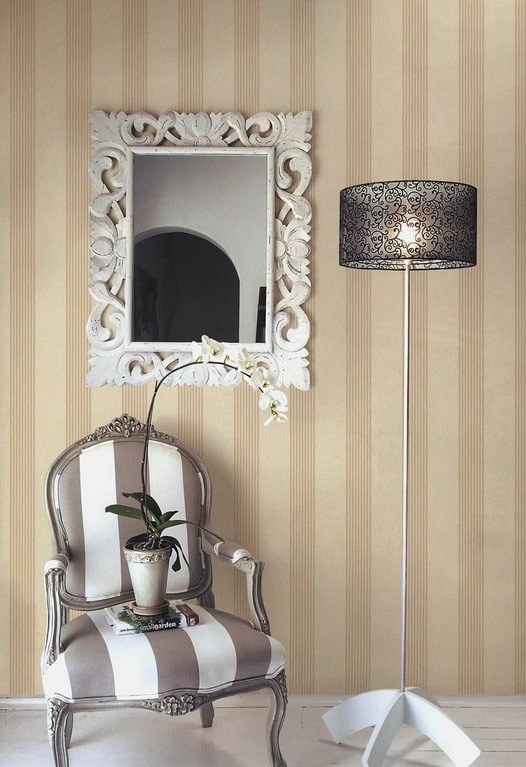 - "Stefano". Pour les intérieurs de styles classique, baroque ou provençal. Revêtements muraux avec différents ornements, rayures, une combinaison de grandes et petites pièces sur le fond, réalisés dans des couleurs apaisantes.