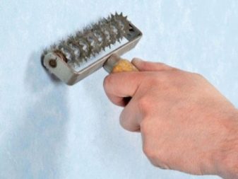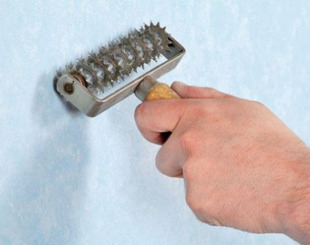 Un impact mécanique approximatif sera nécessaire. pour la destruction de la couche protectrice supérieure de papier peint. Un rouleau à pointes ou un tigre viendra à votre aide. S'il n'est pas possible de rayer un tel inventaire, grattez soigneusement le revêtement avec un autre objet pointu et dur (couteau, poinçon). Grattez afin de ne pas endommager le plâtre sous le papier peint.