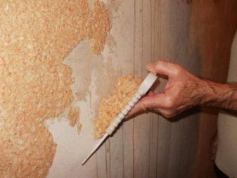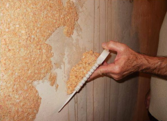 Un autre type de papier peint liquide à base de viscose est beaucoup plus facile à enlever. Débarrassez-vous du revêtement protecteur, le cas échéant. Puis mouillez les murs avec de l'eau tiède plusieurs fois. L'eau aura besoin de beaucoup, le matériau absorbe abondamment l'eau et vous devez l'adoucir. Il ne reste plus qu'à enlever la composition avec une large spatule.