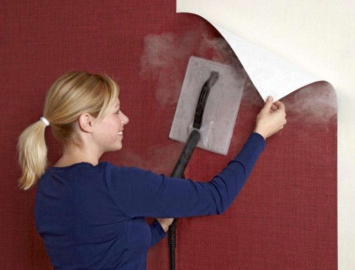 La vapeur chaude aidera à décoller facilement le papier peint.En règle générale, un générateur de vapeur, une vadrouille à vapeur est utilisé pour cela. À la maison, vous pouvez effectuer des manipulations avec un fer à repasser avec fonction vapeur. Étape par étape, versez de la vapeur chaude dans le papier peint et ils deviendront plus souples que jamais.