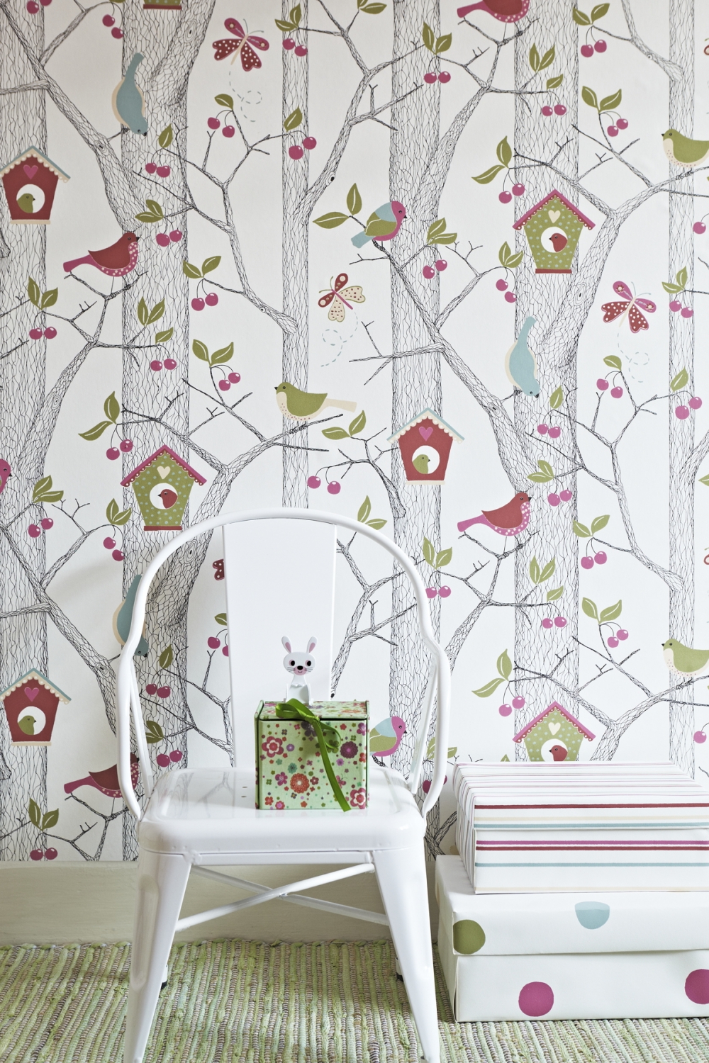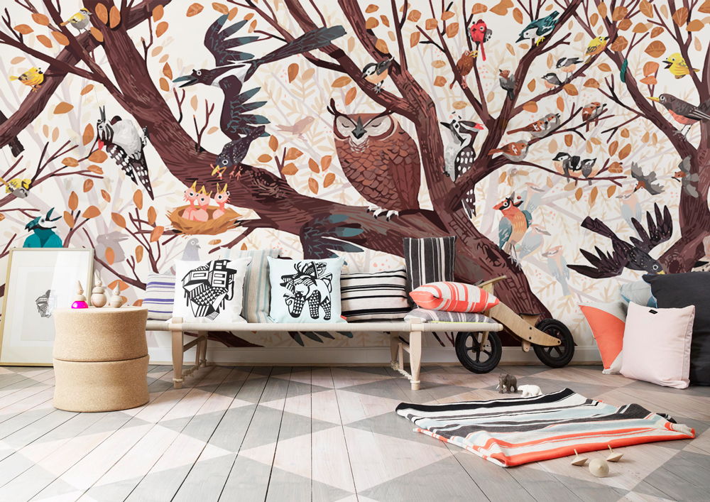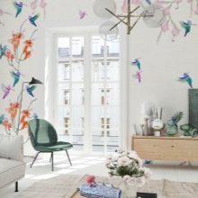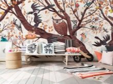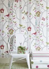 Le papier peint Oiseaux convient aux enfants ou aux adultes qui aiment particulièrement la nature. Pour les garçons, en partie et pour les garçons, une combinaison de couleurs pastel froides et de blanc pur, dessinées sur le fond de ces tons d'oiseaux, perchées sur une branche d'arbre conviendra. Cette solution sera particulièrement attrayante si un mobilier clair est utilisé à l'intérieur. C'est important: Le design moderne implique souvent un ornement lumineux sur un seul mur, avec dessiner sur d’autres un fond monophonique. Cette approche permet d’éviter la diversité, le mauvais goût et, en même temps, de maximiser toute l’étendue de votre idée.