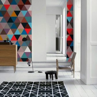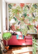 Original et expressif dans l'intérieur moderne va chercher du papier peint avec une combinaison de deux voire trois couleurs actives. Vous pouvez jouer sur les contrastes, mais n'oubliez jamais que les couleurs principales et secondaires doivent être mises en évidence. Vous pouvez réduire le flashiness de ton, si vous choisissez celui qui est répété par des accessoires ou d'autres détails de la pièce.