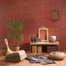 Les fibres de jute sont capables de s'entrelacer de la manière la plus complexe, et le voile formé à partir de celles-ci est facilement teint; C'est un design vraiment extraordinaire. Le serpyanka est un matériau obtenu à partir de cellulose expansée. Il est donc totalement à l'abri des conditions ambiantes de la salle de bain ou de la cuisine. Dans ce fond d'écran, serpyanka peut coller même à ceux qui connaissent mal la technologie de la construction et de la réparation.