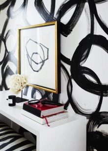 Presque tous les styles existants permettent l'utilisation de papier peint décoratif noir et blanc. Ainsi, dans un intérieur minimaliste et dans un environnement provençal, en haute technologie, cela mettra l'accent sur la simplicité, ses divers avantages étant compris. Dans le style gothique, les nuances claires sont avantageusement combinées à des tons sombres riches d'autres éléments de design et agrandissent visuellement la pièce. Pour le style rétro il est logique de créer une série associative à l'ère des films muets.