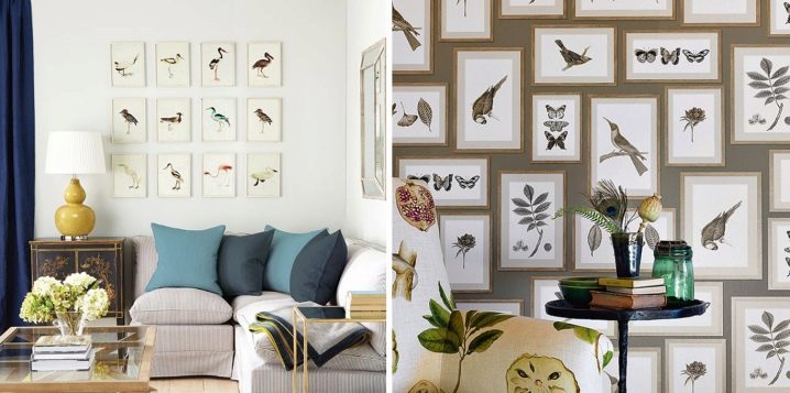 La combinaison de différents motifs ou dessins doit être bien pensée, en coordonnant toujours la couleur de l’ornement. Bonnes idées - rassembler dans une pièce un motif abstrait et géométrique, ou montrer un ornement floral dans un endroit et imiter des matériaux naturels dans un autre.