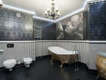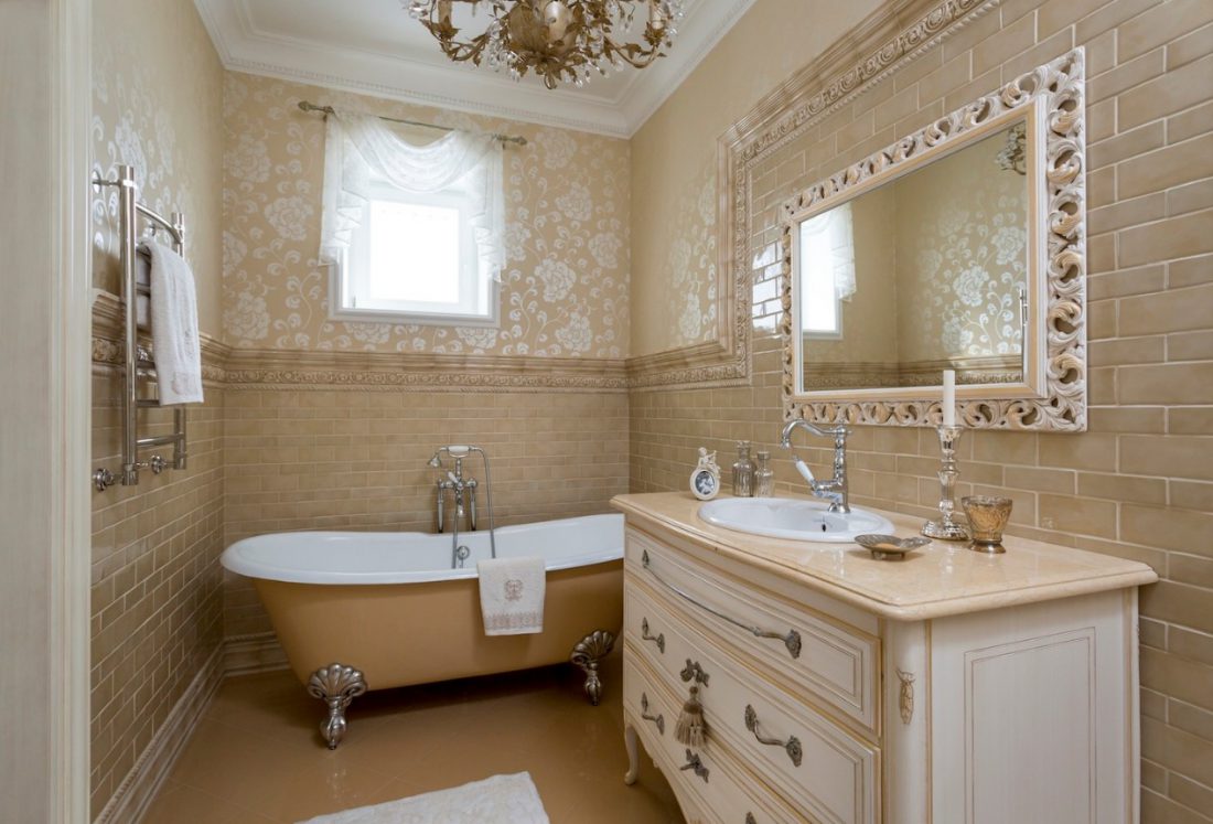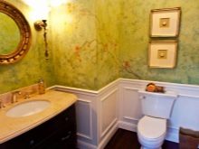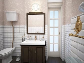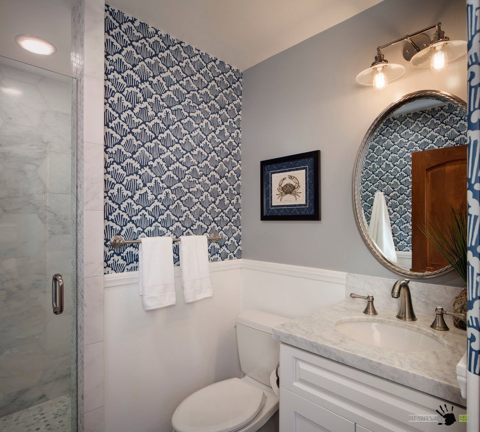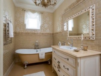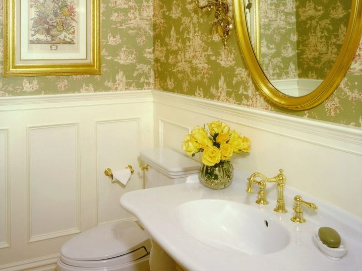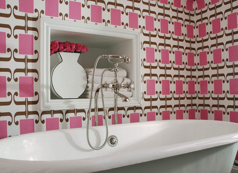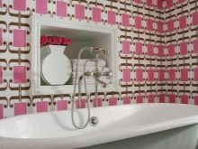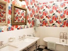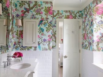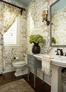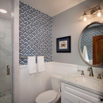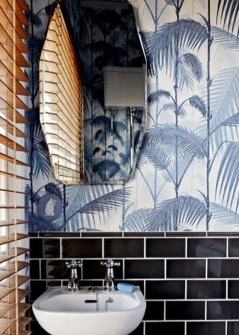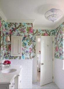 - La section du mur située au-dessus de 60 à 70 cm de la baignoire, du lavabo ou de la douche est considérée comme une zone plus sèche. Par conséquent, ici, vous pouvez coller différents types de papier peint en toute sécurité;