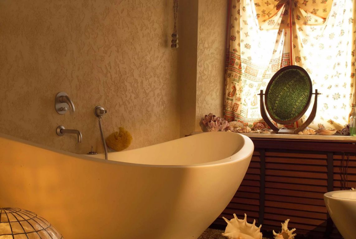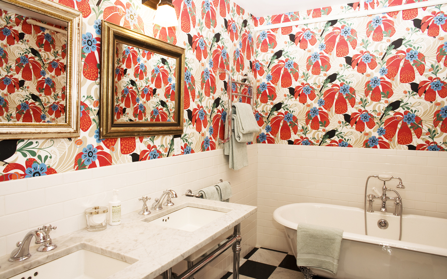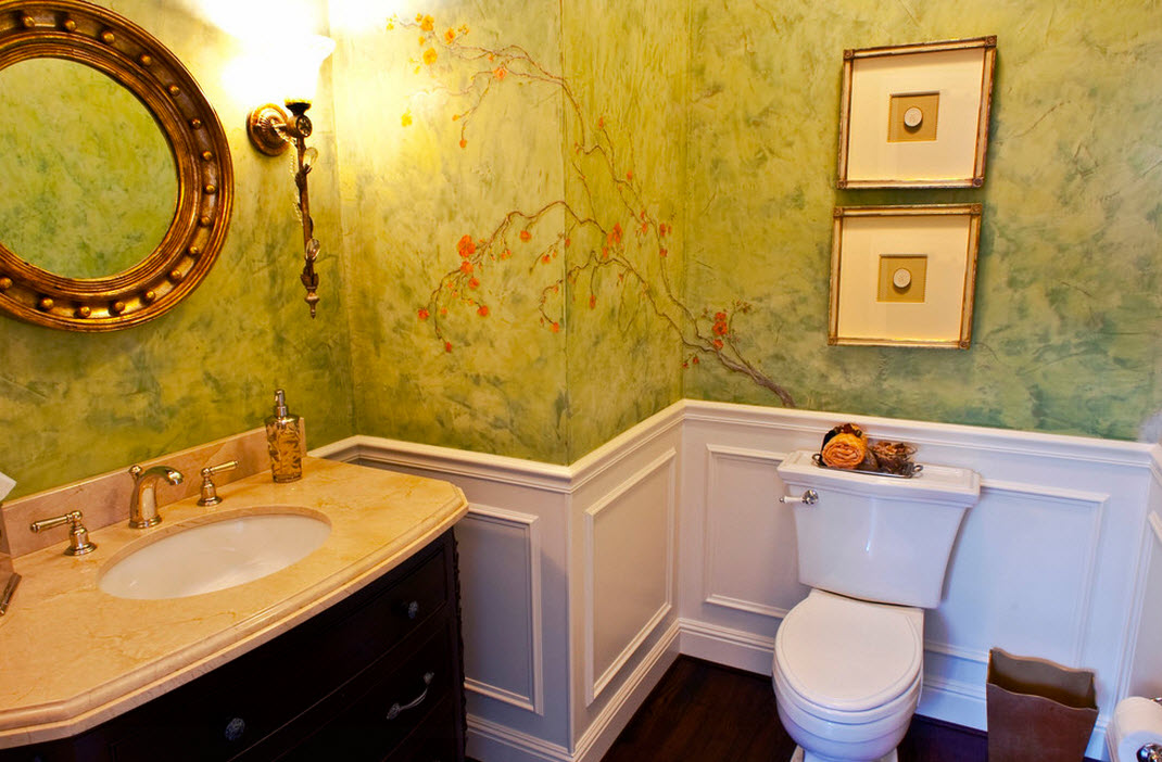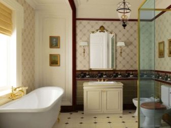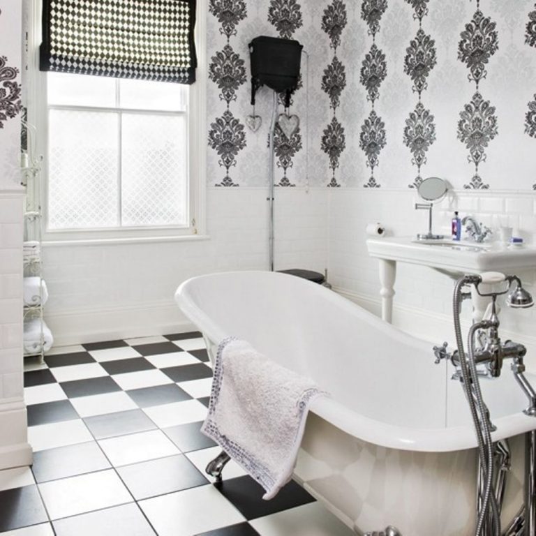 - La section du mur située au-dessus de 60 à 70 cm de la baignoire, du lavabo ou de la douche est considérée comme une zone plus sèche. Par conséquent, ici, vous pouvez coller différents types de papier peint en toute sécurité;