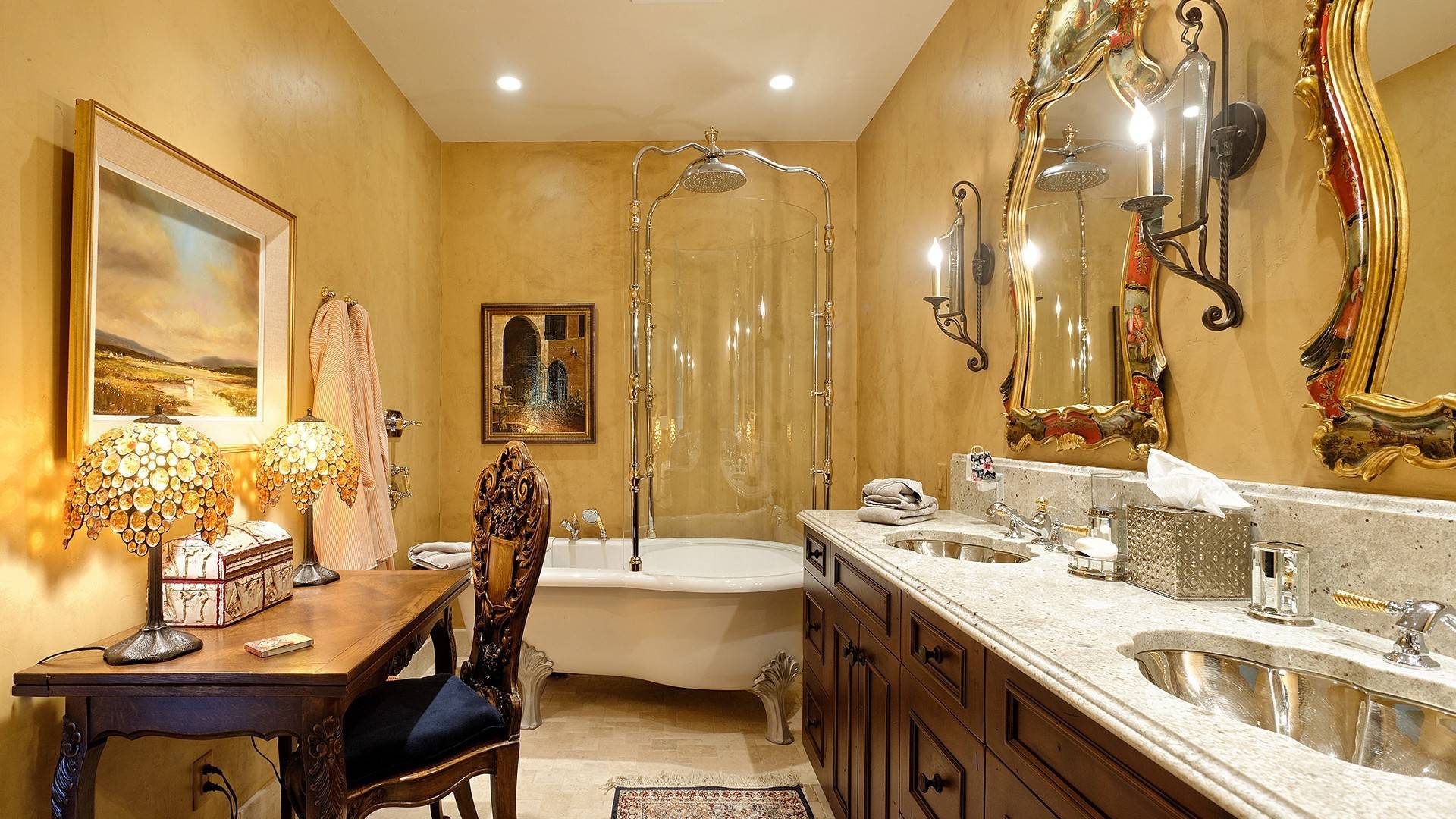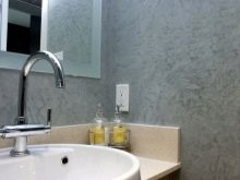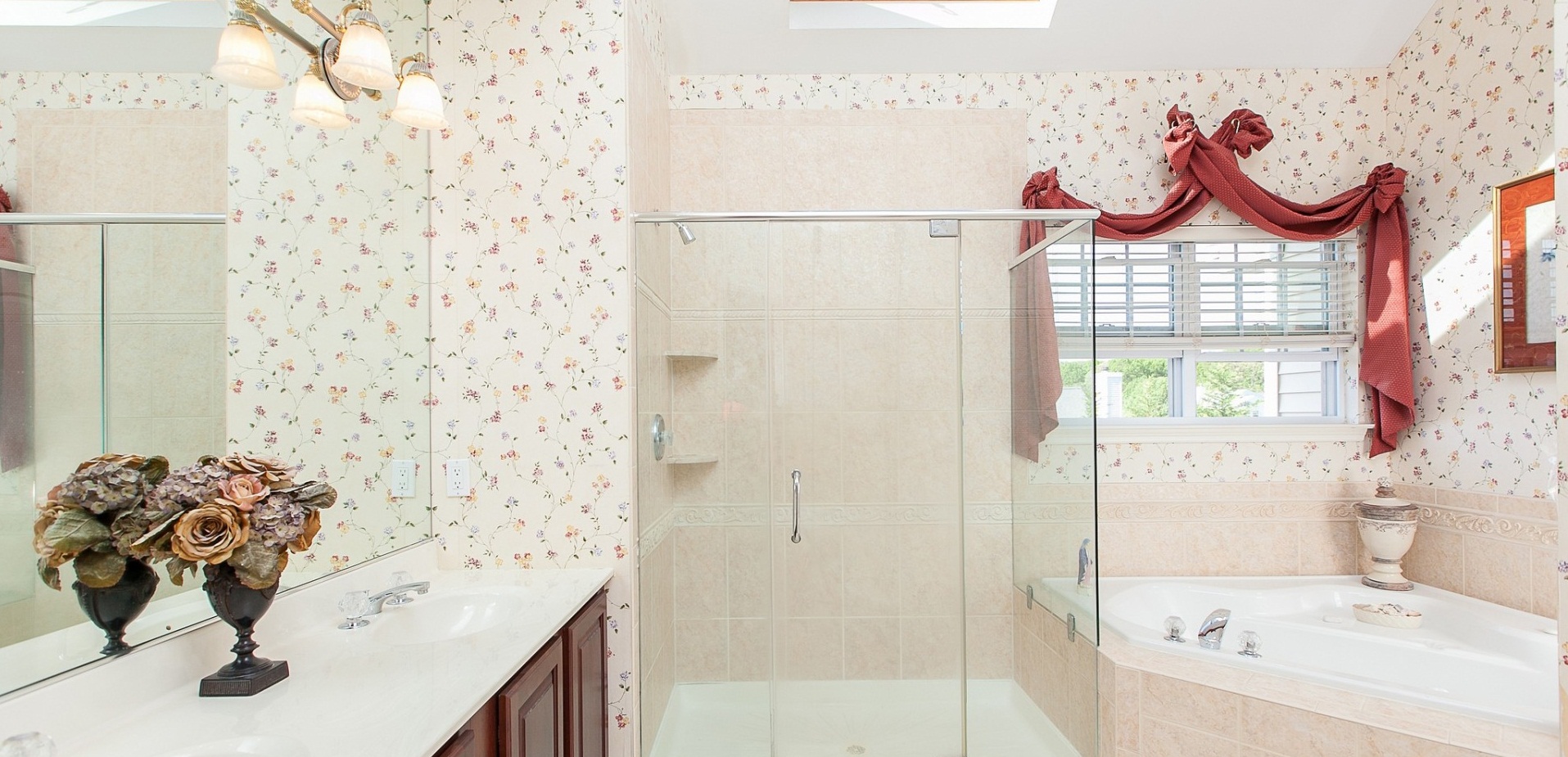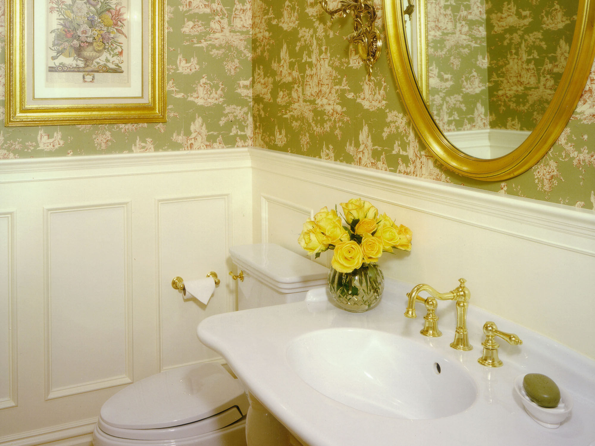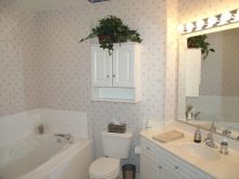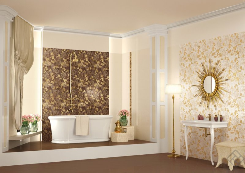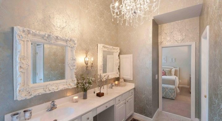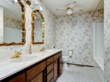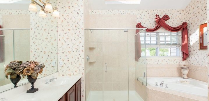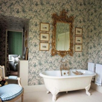 - La surface des murs directement au-dessus de la baignoire, de l’évier ou de la cabine de douche. Ces zones sont les plus sensibles non seulement à une humidité élevée, mais également à la pénétration constante d'eau. En règle générale, les papiers peints de ce site ne sont pas collés, car même les matériaux les plus résistants et les plus résistants à l’humidité peuvent tomber et perdre leur apparence au fil du temps;