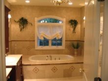 - Une surface du mur au-dessus du bain d'environ 20 à 30 cm est considérée comme acceptable pour le collage. Il est nécessaire de choisir un matériau durable et dense, car l'eau atteint toujours cette hauteur. De plus, la toile doit résister à un nettoyage privé, car la saleté et la poussière s'accumulent rapidement sur cette zone.